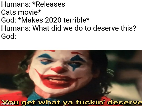 Forever alone in a crowd, failed comedian Arthur Fleck seeks connection as he walks the streets of Gotham City. Arthur wears two . Joker Meme You Get What You Deserve are a topic that is being searched for and favored by netizens today. You can Get the Joker Meme You Get What You Deserve here. Save all royalty-free picture. Joker - You get what you f deserve meme, Joker - You get what you f deserve meme. An iconic scene where the Joker kills Murray, but I made it a bit more family friendly, .